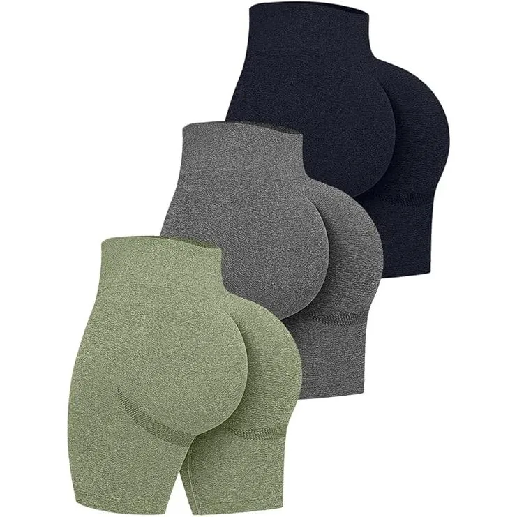 OQQ Women's 3 Piece High Waist Workout Shorts Butt Lifting Tummy Control Ruched Booty Smile Yoga Short Pants